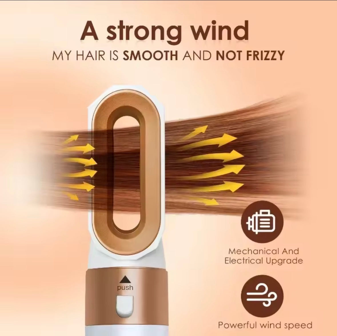 Met onze 5-in-1 föhnset heb je alles wat je nodig hebt voor een perfecte haarstijl in één complete set. Of je nu wilt krullen, stijlen of volume creëren, deze set maakt het eenvoudig en snel.